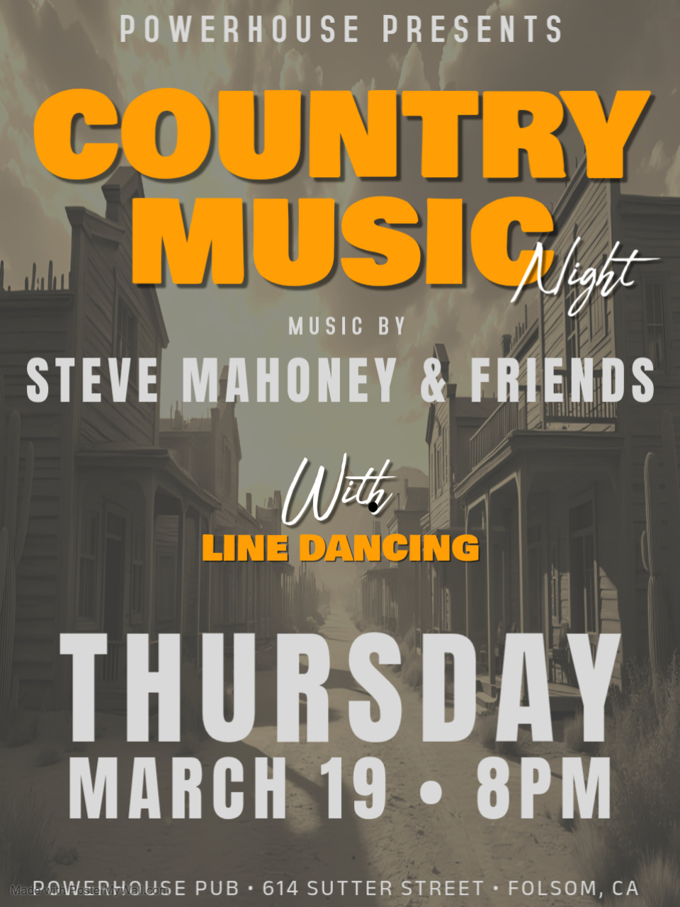 Award winning singer / songwriter Steve Mahoney & Friends bring their electric country set to The Powerhouse Pub.