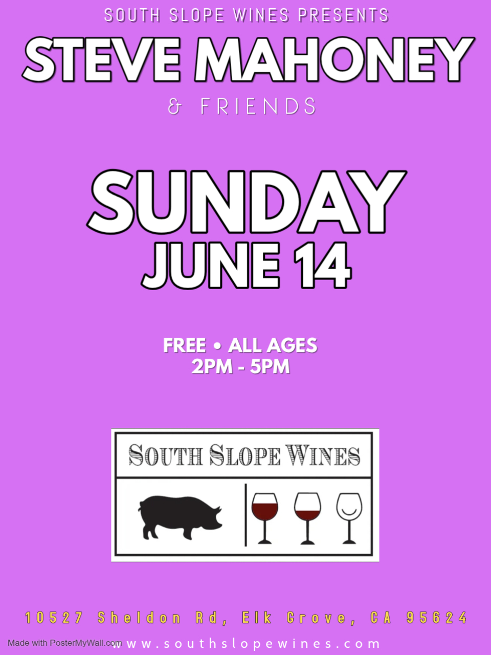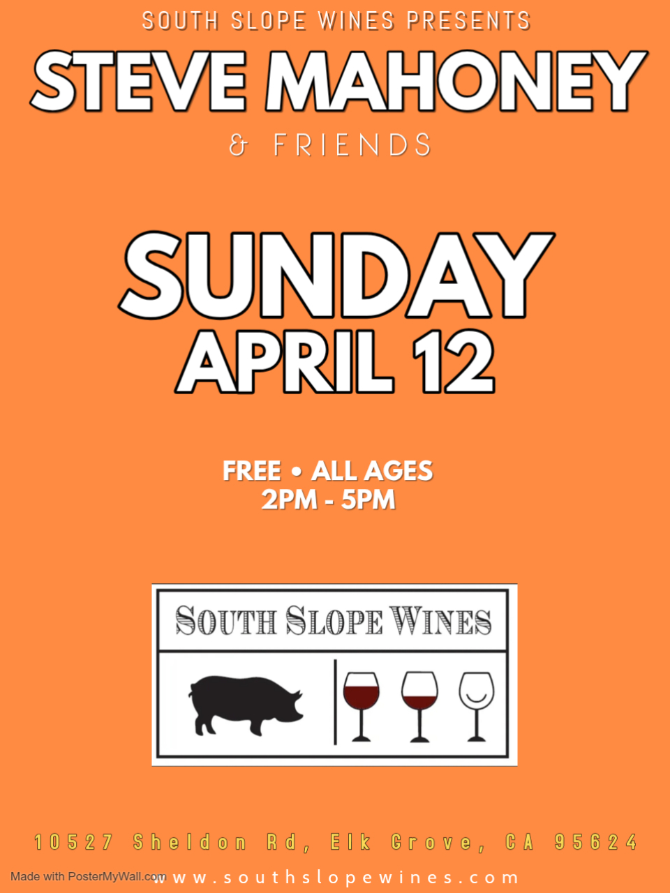 Award winning singer / songwriter Steve Mahoney & Friends bring their high energy set to South Slope Wines for an ALL AGES fun and family friendly event.