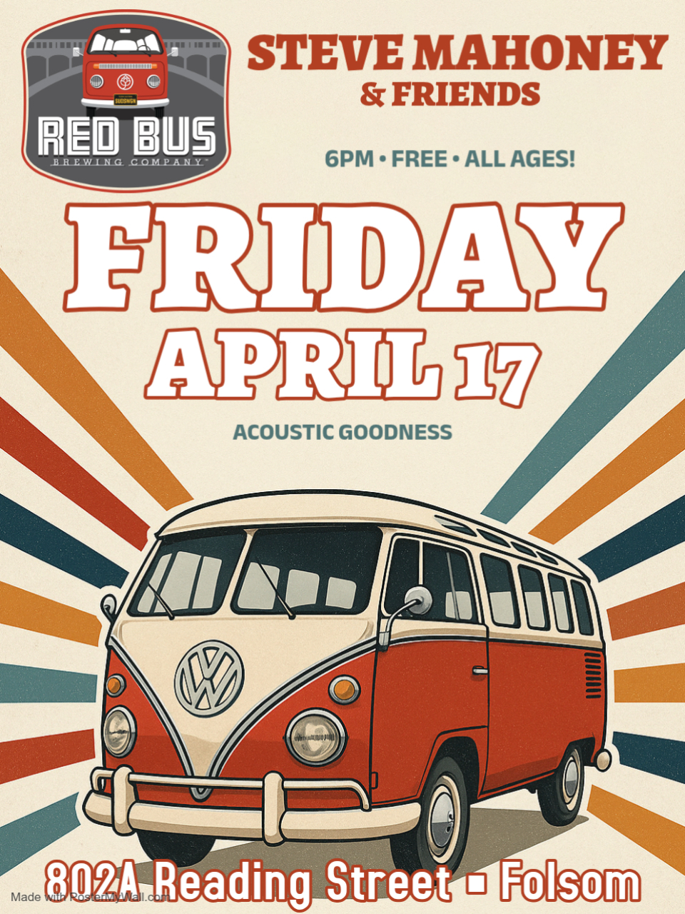 Award winning singer / songwriter Steve Mahoney & Friends bring their high energy set to Red Bus Brewing Company for an ALL AGES fun and family friendly event.