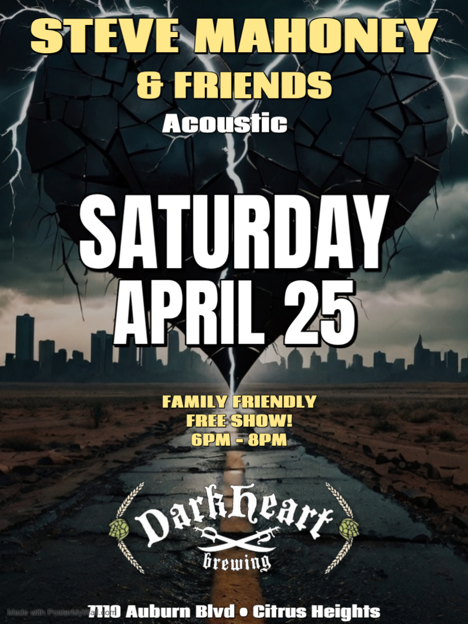 Award winning singer / songwriter Steve Mahoney & Friends bring their high energy set to DarkHeart Brewery for a fun and family friendly event.
