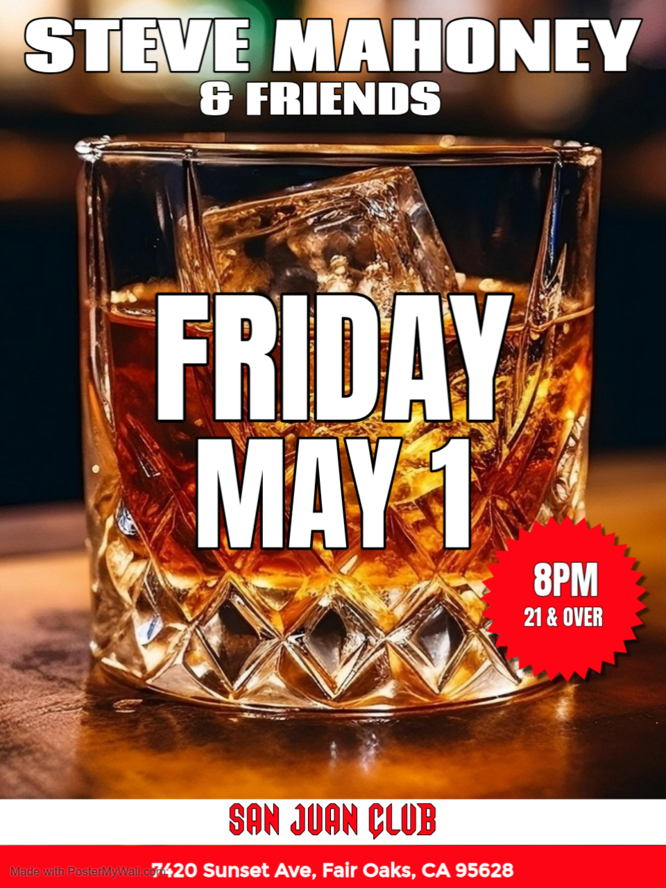Award winning singer / songwriter Steve Mahoney & Friends bring their high energy set to San Juan Club for a fun event.