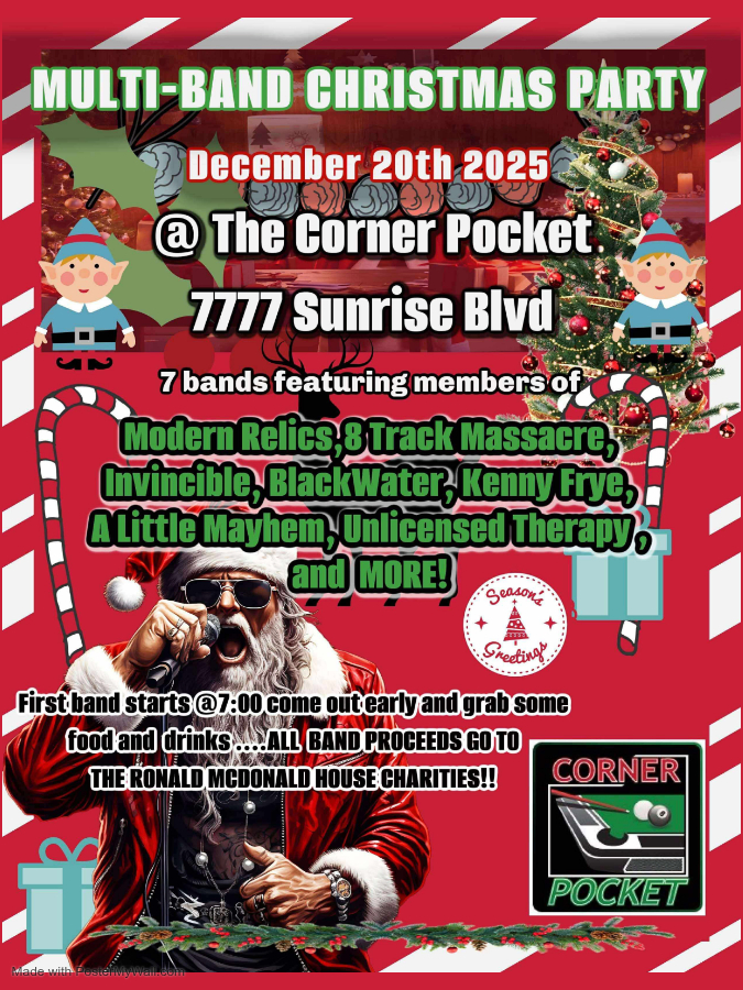 Join us for a special holiday event. Multiple bands and players on the Corner Pocket stage. $10 cover.